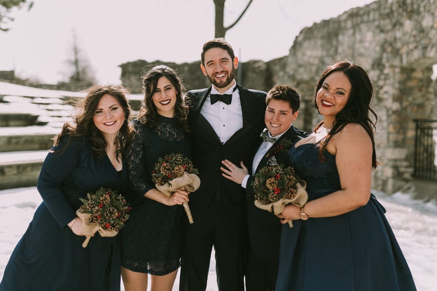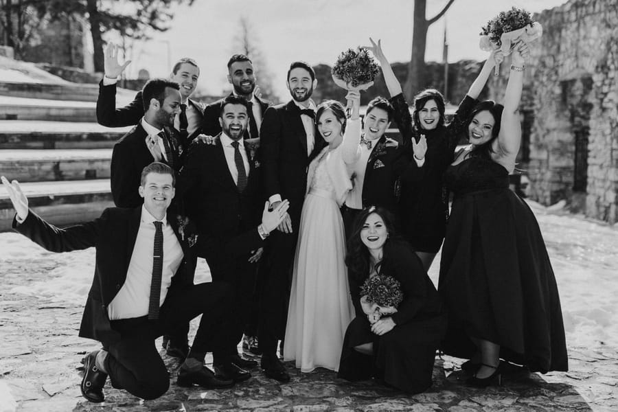 I love this first photo of Liv and Josh with their wedding party because the expression on their faces gives you a glimpse of how loved this couple is! Everyone at their wedding was cheering them on because everyone there knew one thing: these two were made for one another! And their love and kindness has touched so many people (including myself).