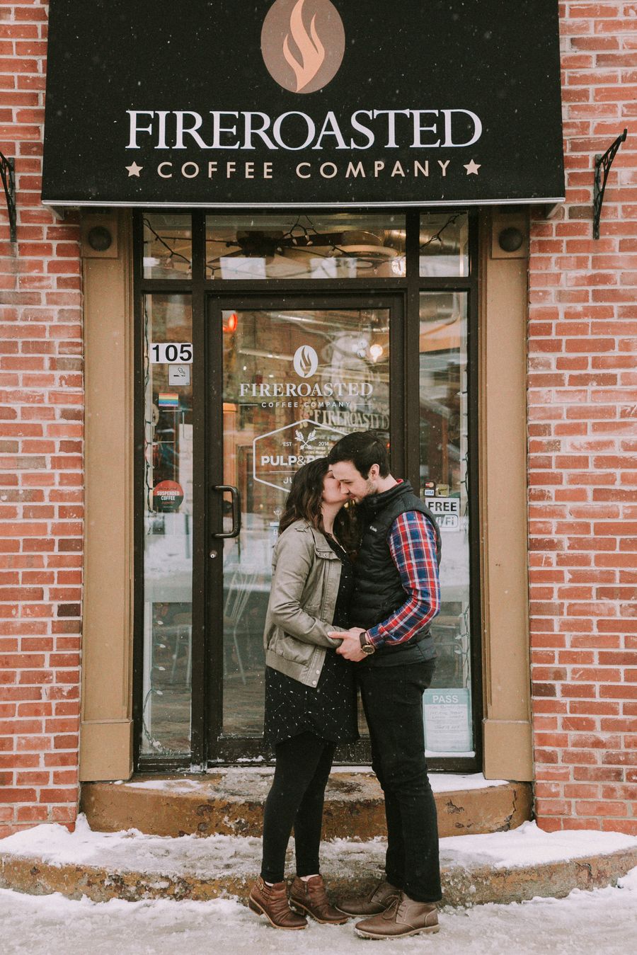 Here are a few highlights from Rebecca and Phil’s cozy winter engagement! Huge thanks to Fire Roasted Coffee for allowing us to shoot in their cute cafe + generously supplying us with some free coffee!