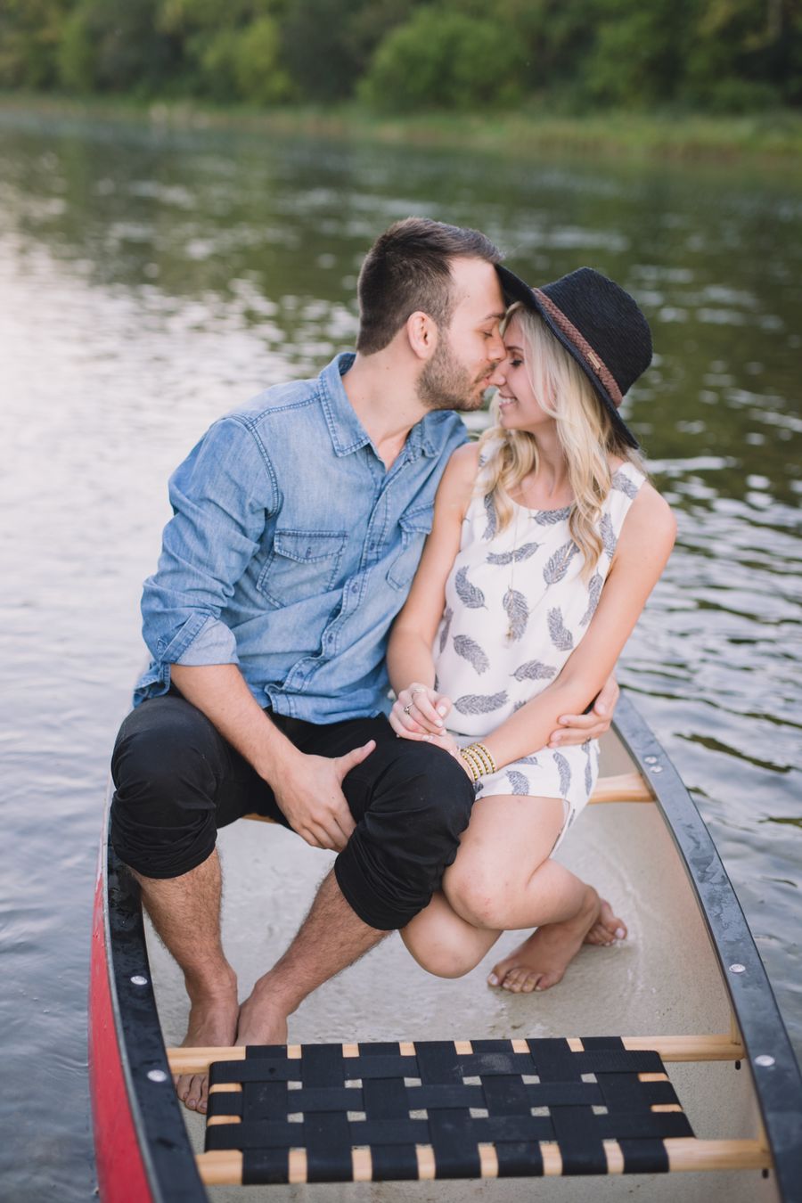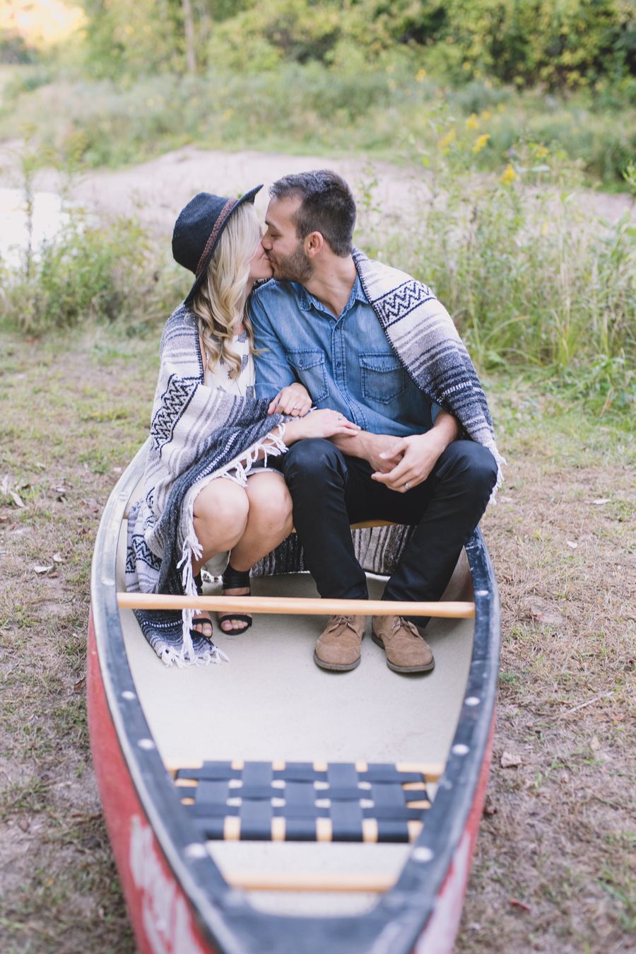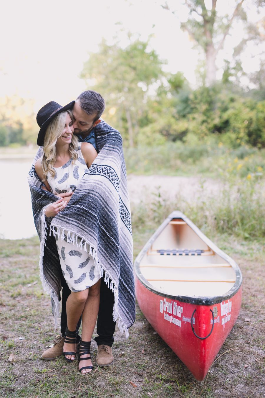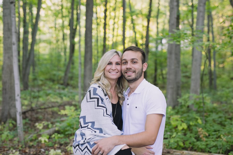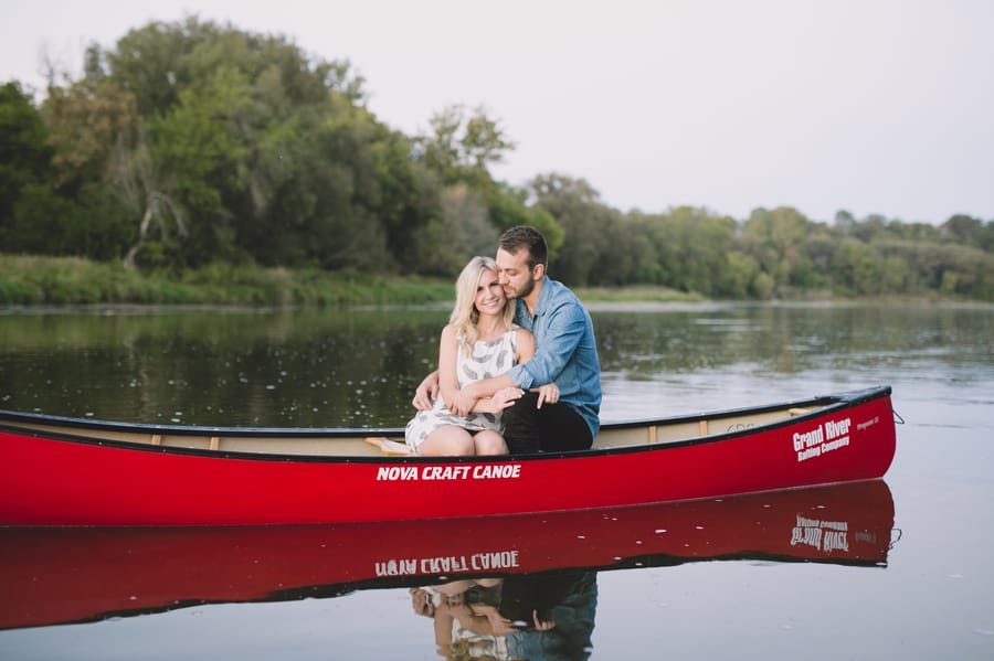 Escape into nature with **Dan and Jessica’s enchanting engagement session**, set amidst the serene beauty of an Ontario forest. Their romantic adventure featured **cozy moments around a rustic cabin**, capturing their genuine warmth, before they took to the water in a charming red canoe. This outdoor engagement shoot beautifully highlights their love story, blending the tranquility of the woods with playful paddles on the water, making for truly memorable and picturesque forest engagement photos.
