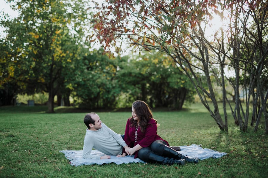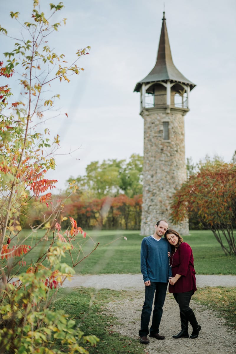 **Christopher and Alyssa’s engagement** is probably my favourite fall engagement that I’ve ever photographed! I recently discovered **Pioneer Memorial Tower Park**, and when Christopher asked if we could do their photos there I was beyond thrilled! I had been dreaming of doing a shoot at this location ever since I first visited the park. These two were so sweet and fun to work with, and I loved that Alyssa even brought along a cozy blanket and a cool looking lantern!