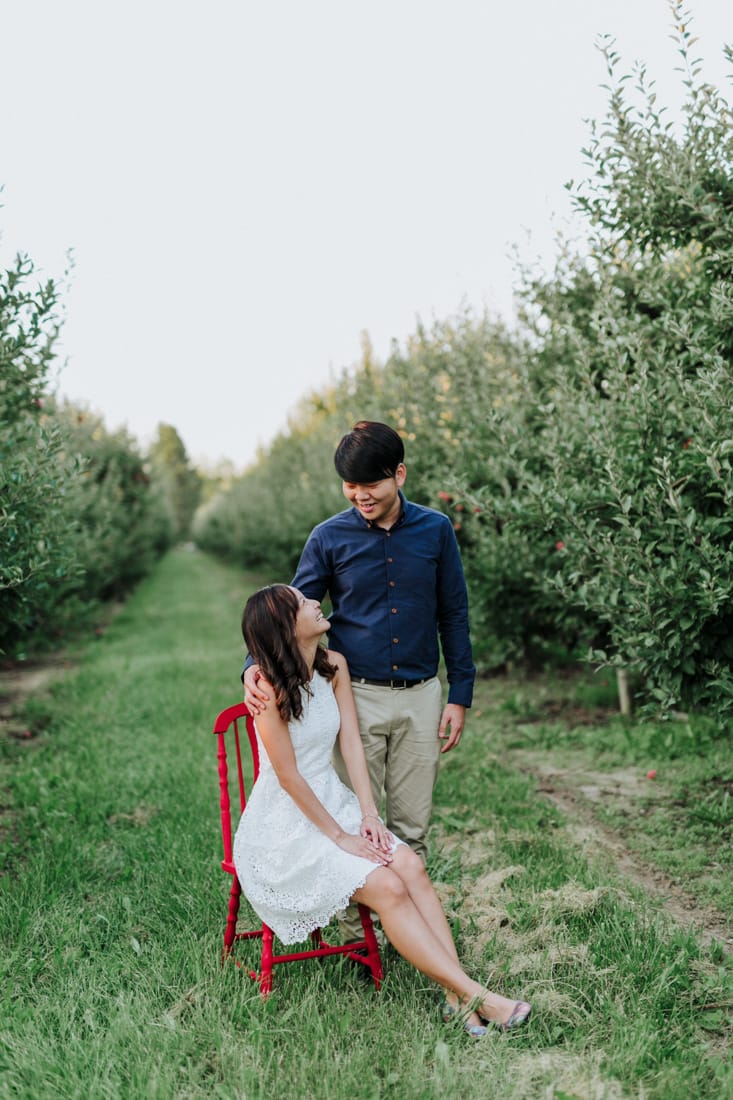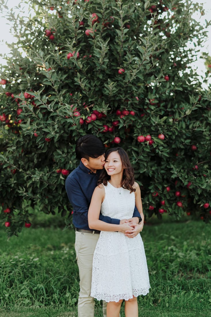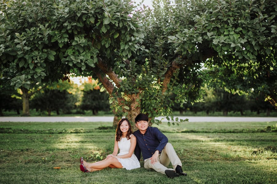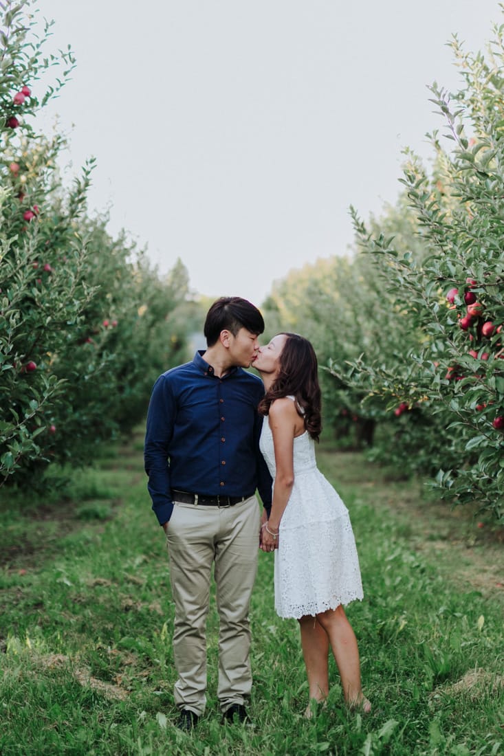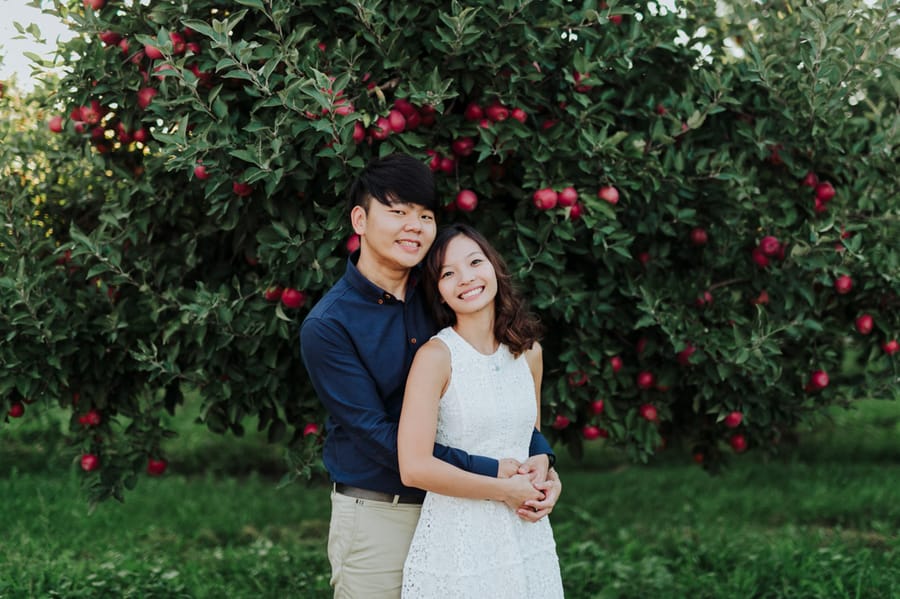 When meeting Brian and Regina, I thought they were such a friendly and outgoing couple! The **apple orchard** was a perfect setting to capture their fun personalities. Something I thought was pretty funny was how they both couldn’t believe that the apple orchard had no fence surrounding it- they wondered how it’s possible that no one comes to steal the apples! “This is Canada,” I said, “I know people who never lock their front doors!” They were both so stunned. Thank God for this safe country!