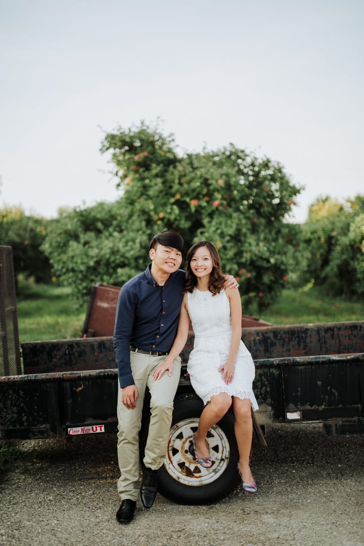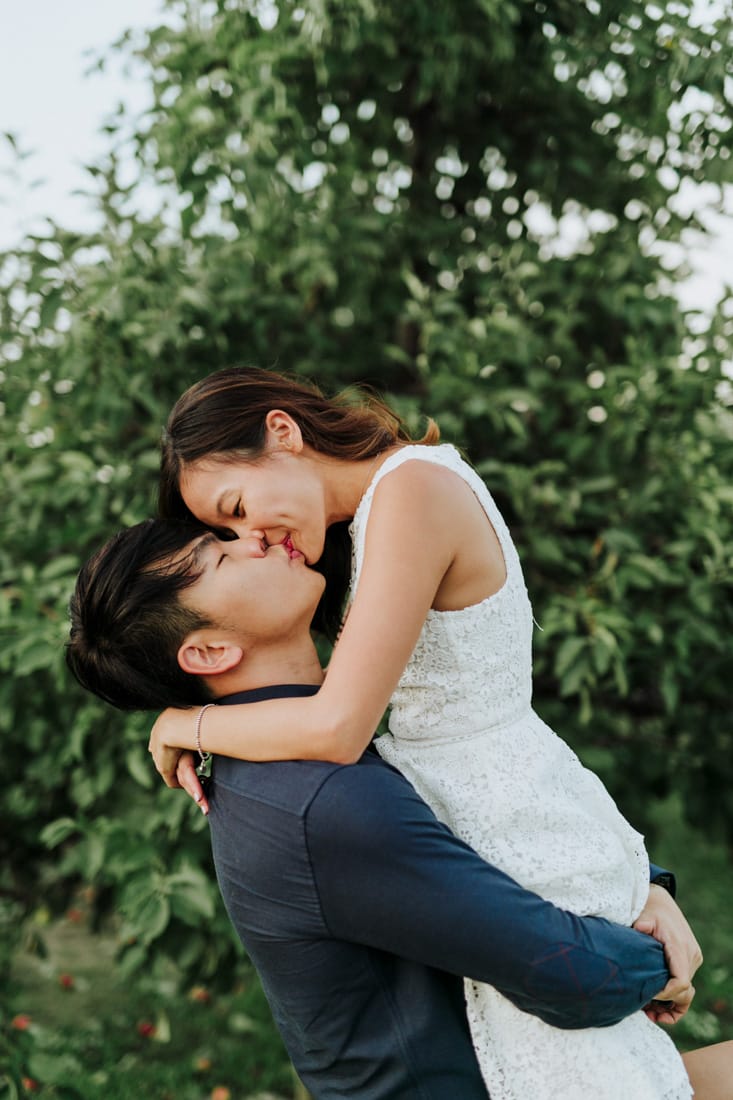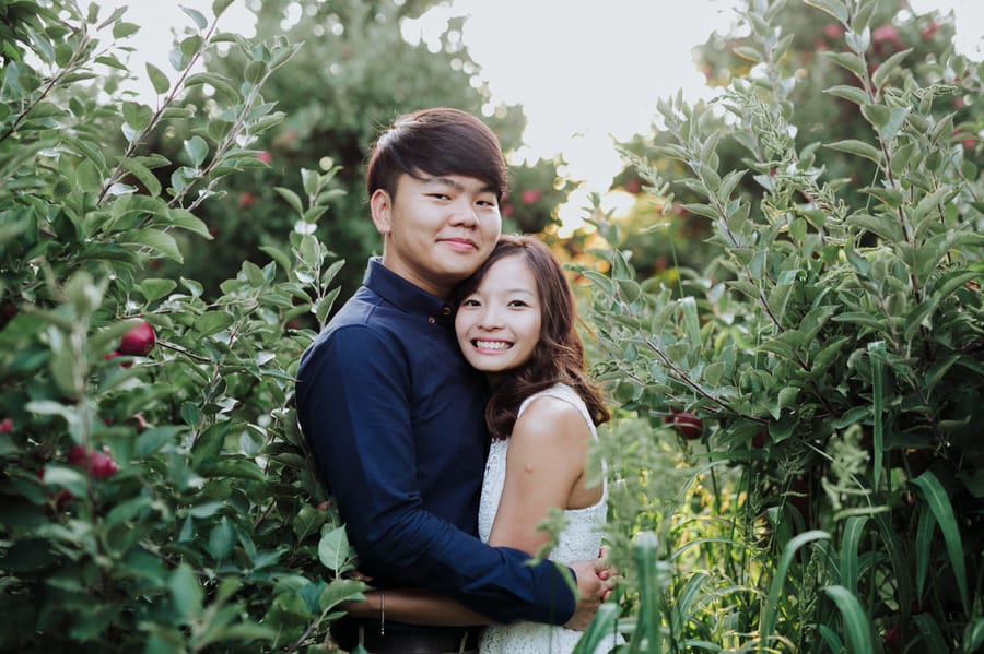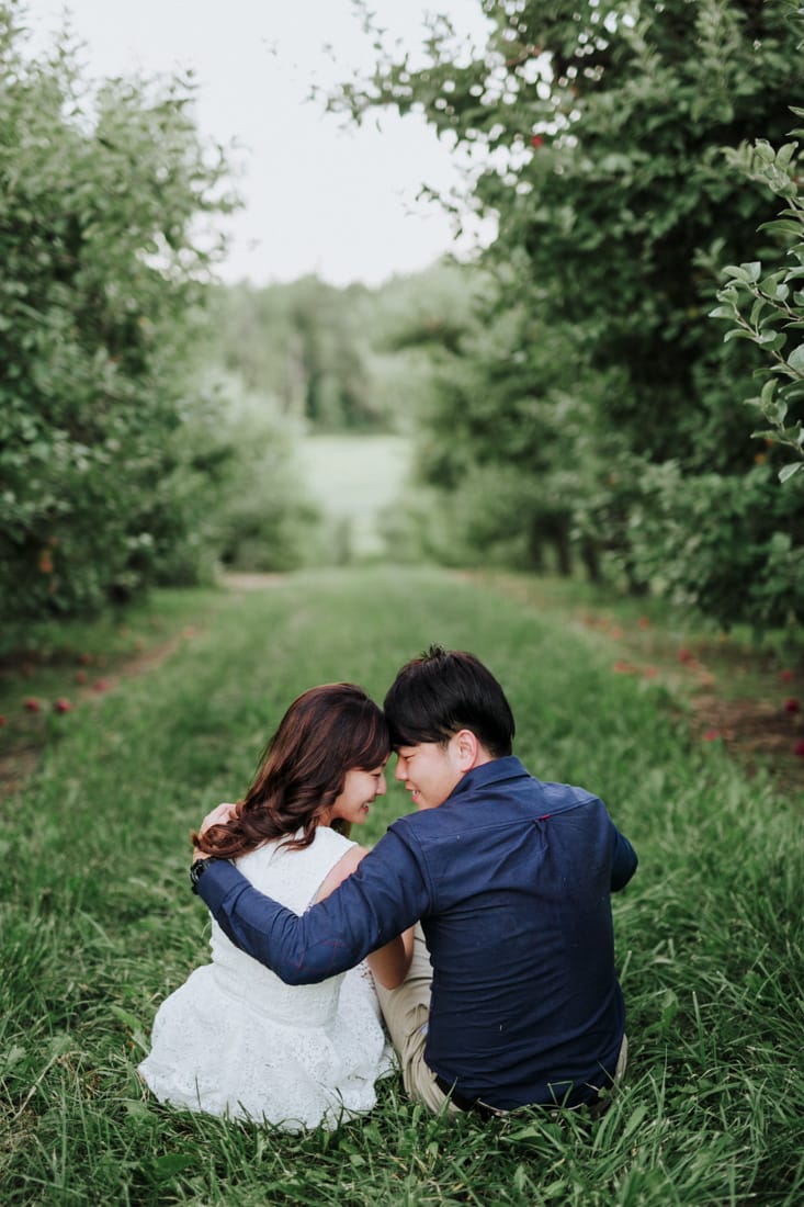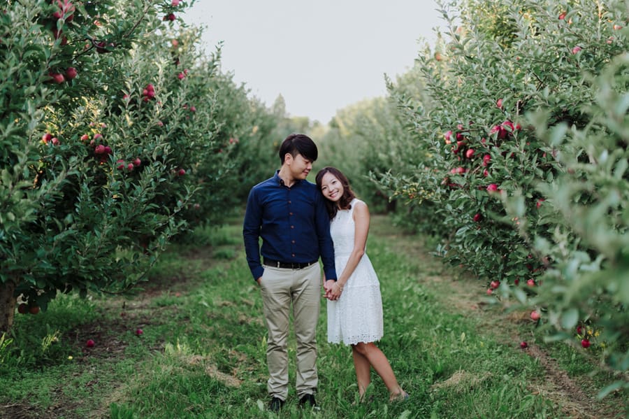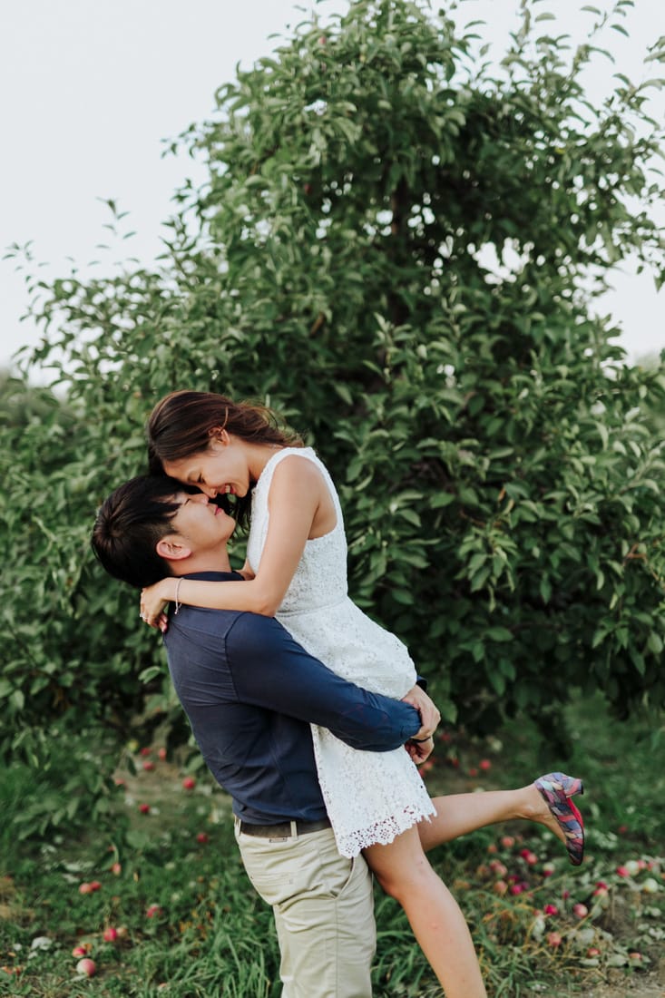 When meeting Brian and Regina, I thought they were such a friendly and outgoing couple! The **apple orchard** was a perfect setting to capture their fun personalities. Something I thought was pretty funny was how they both couldn’t believe that the apple orchard had no fence surrounding it- they wondered how it’s possible that no one comes to steal the apples! “This is Canada,” I said, “I know people who never lock their front doors!” They were both so stunned. Thank God for this safe country!
