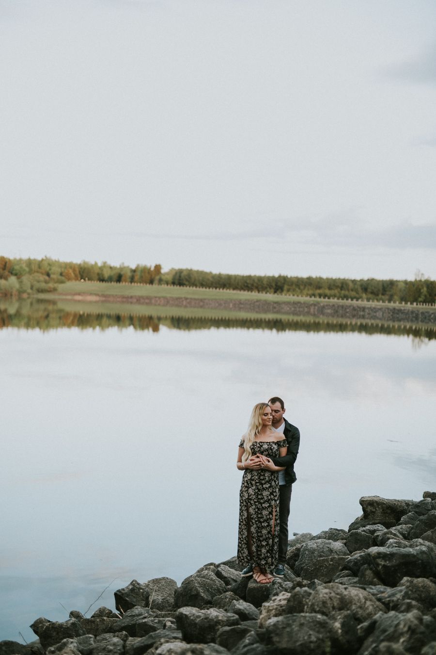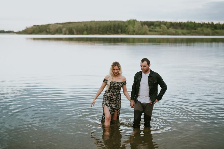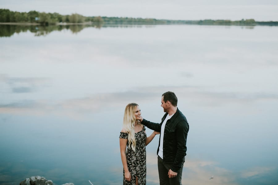 Sharing a love for travel and hiking, **David and Ramona** had an engagement session that was nothing short of adventurous! And Ontario’s Guelph Lake was the perfect spot for them to do a bit of exploring and get their feet wet (no pun intended)!