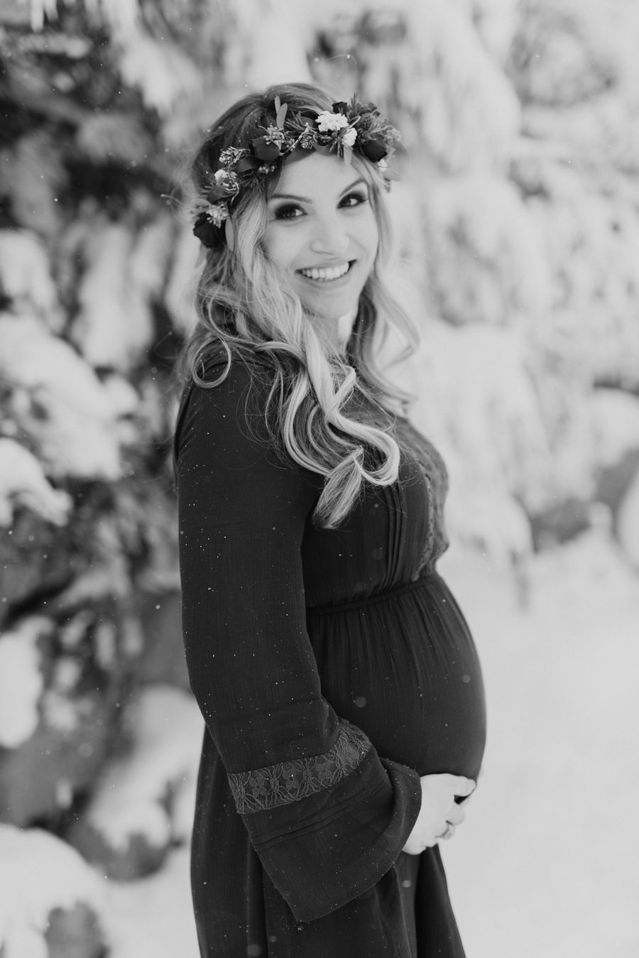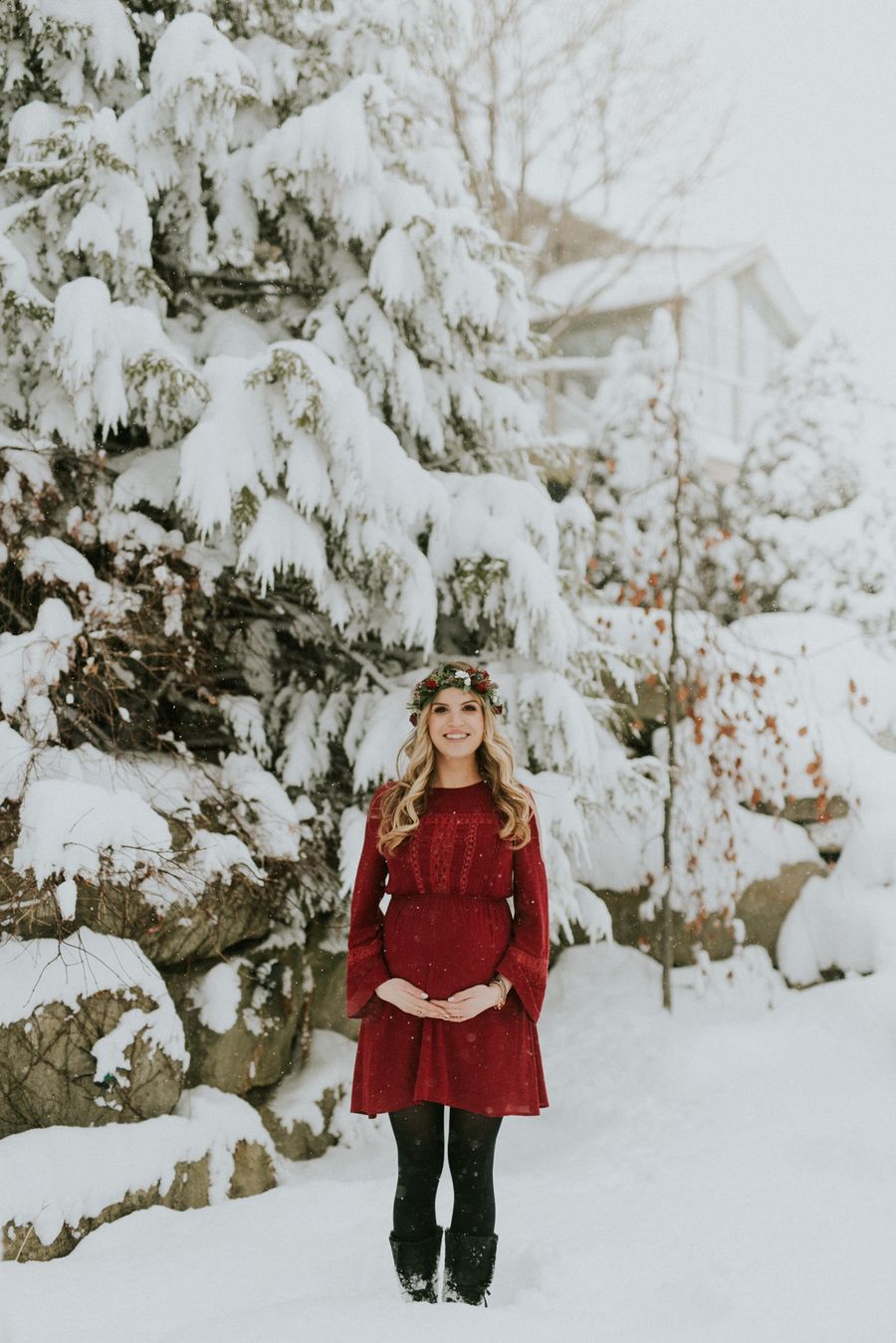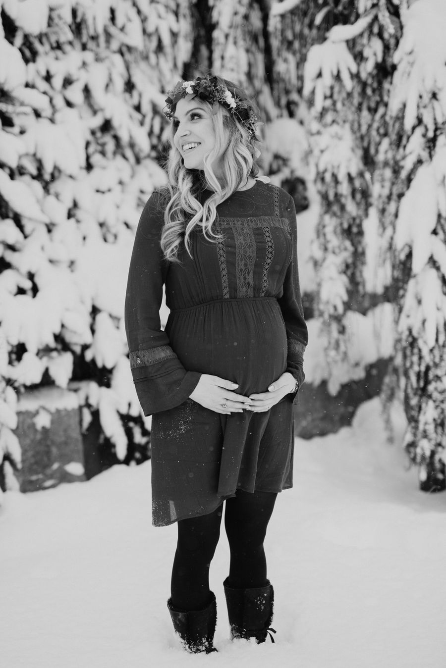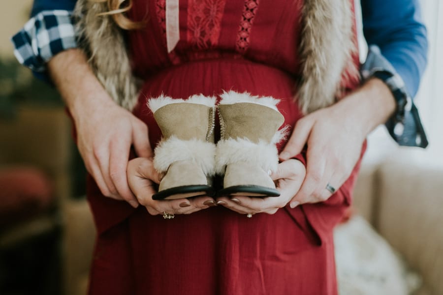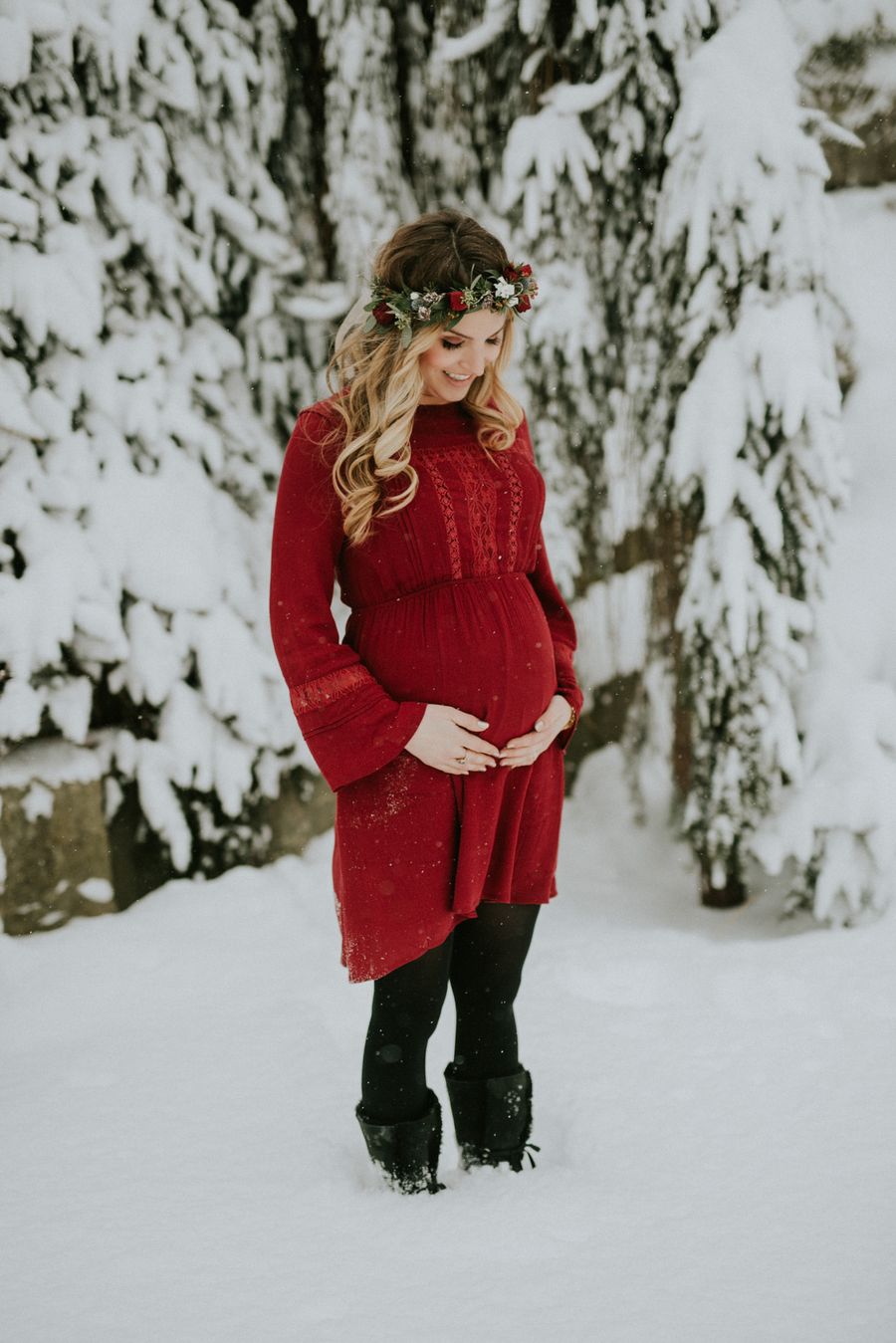 I have to say, this was one of my favourite maternity sessions ever!! It actually took place during a huge winter snowstorm. After it finally stopped snowing we snuck outside to take a few more pictures. It was -11 degrees but totally worth it for those snow-covered trees! Major props to **Michelle for braving that freezing cold weather**! She will be one tough mama, that’s for sure!