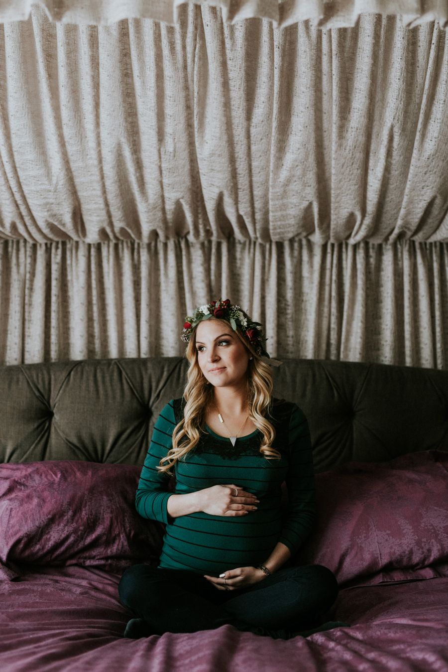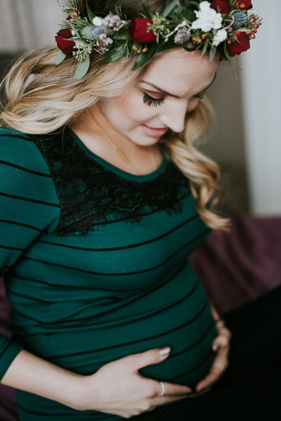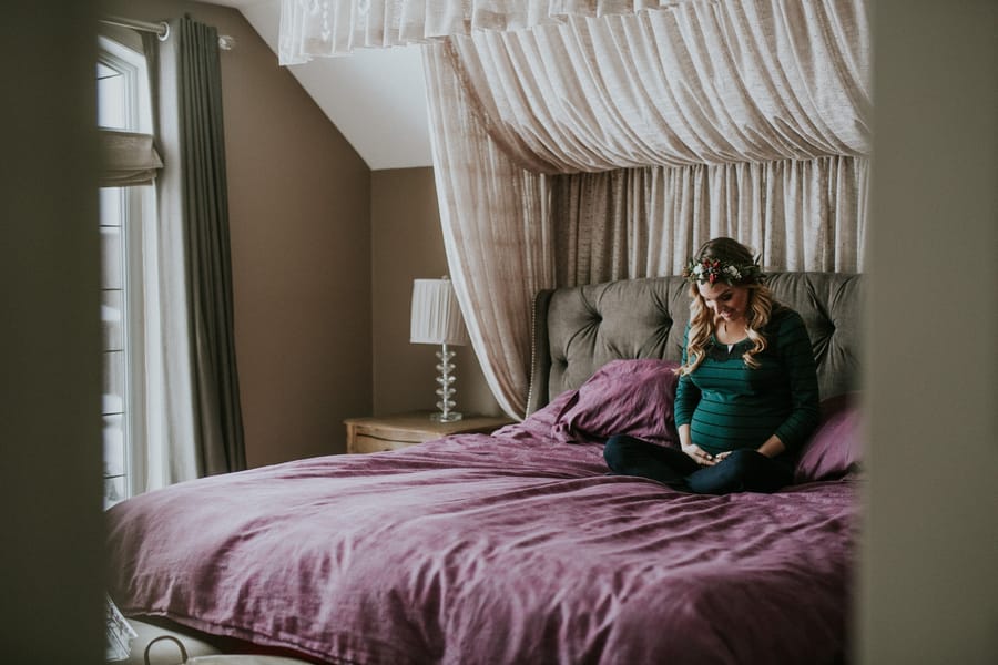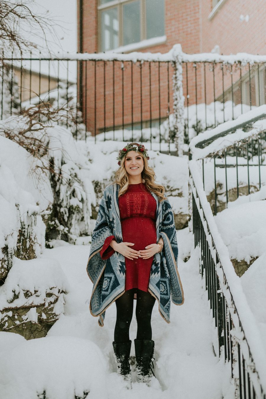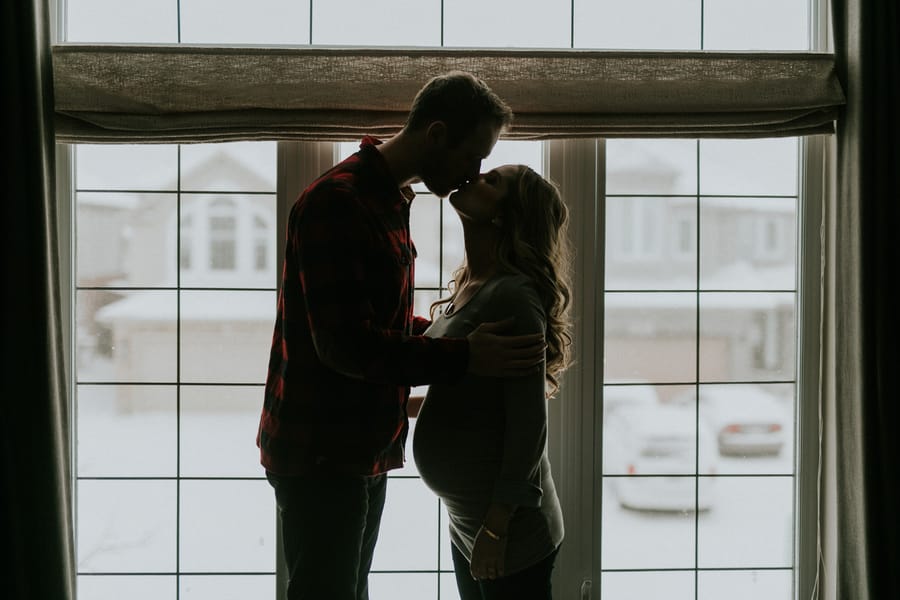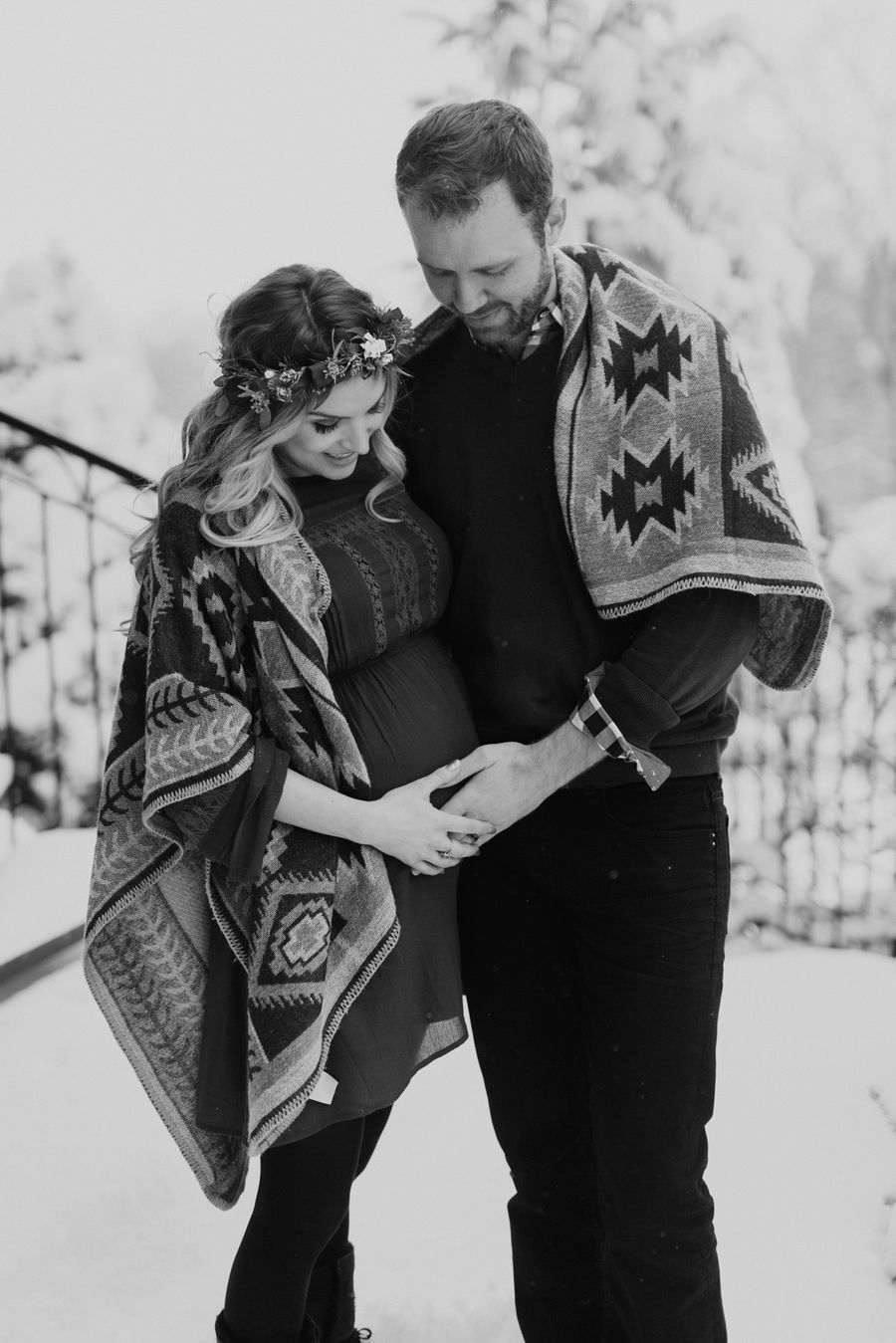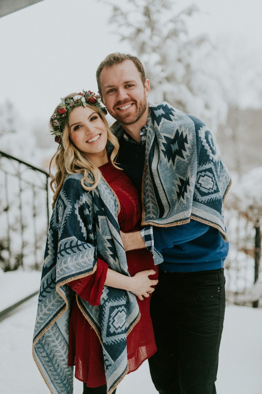 I have to say, this was one of my favourite maternity sessions ever!! It actually took place during a huge winter snowstorm. After it finally stopped snowing we snuck outside to take a few more pictures. It was -11 degrees but totally worth it for those snow-covered trees! Major props to **Michelle for braving that freezing cold weather**! She will be one tough mama, that’s for sure!