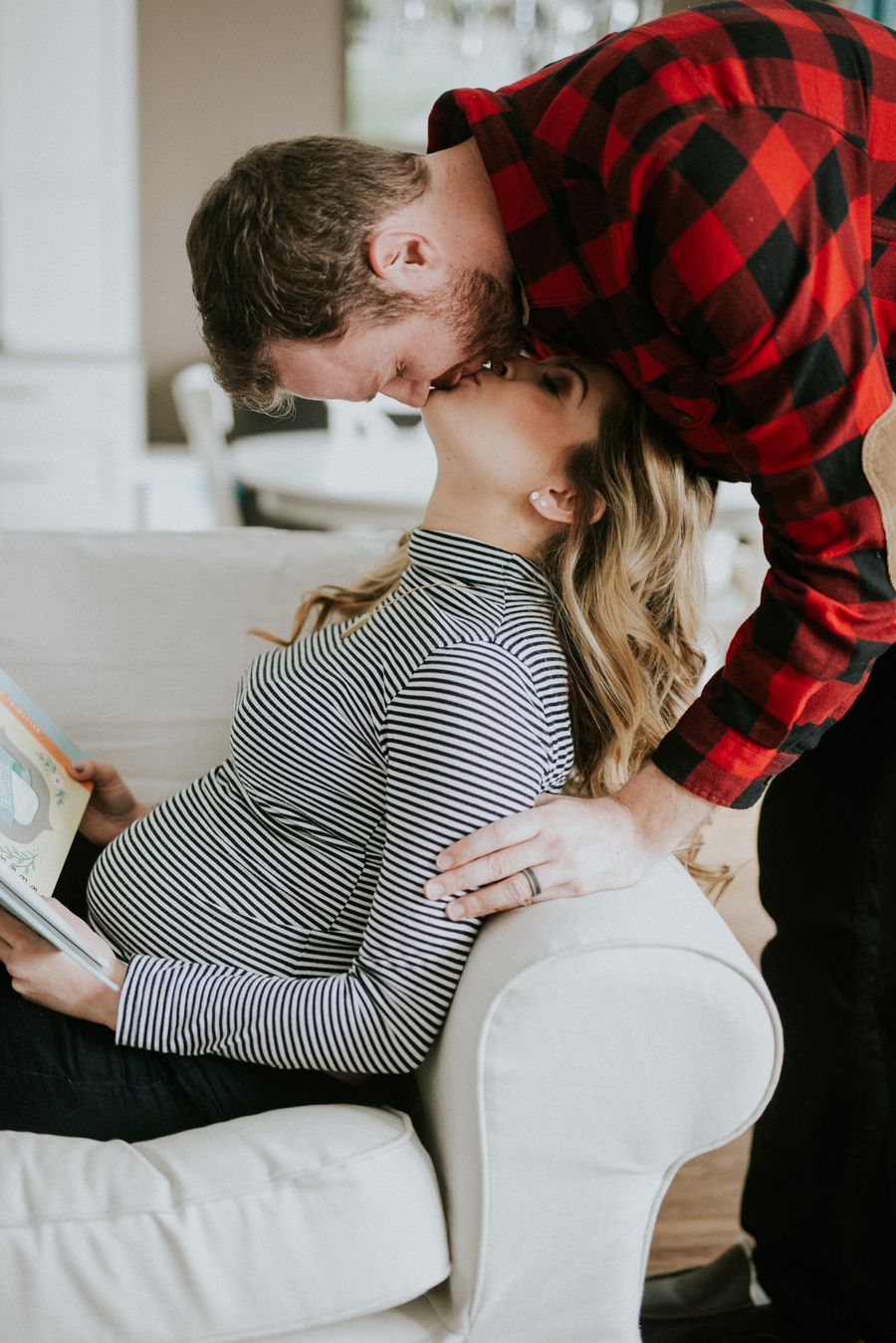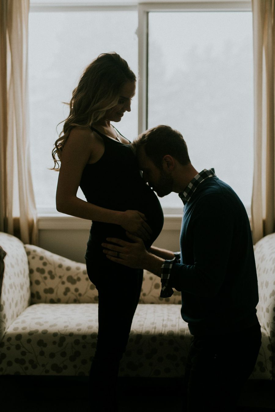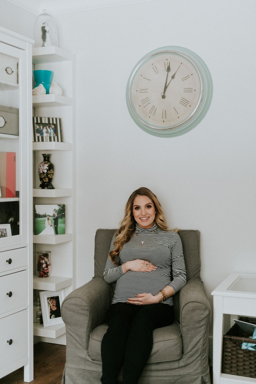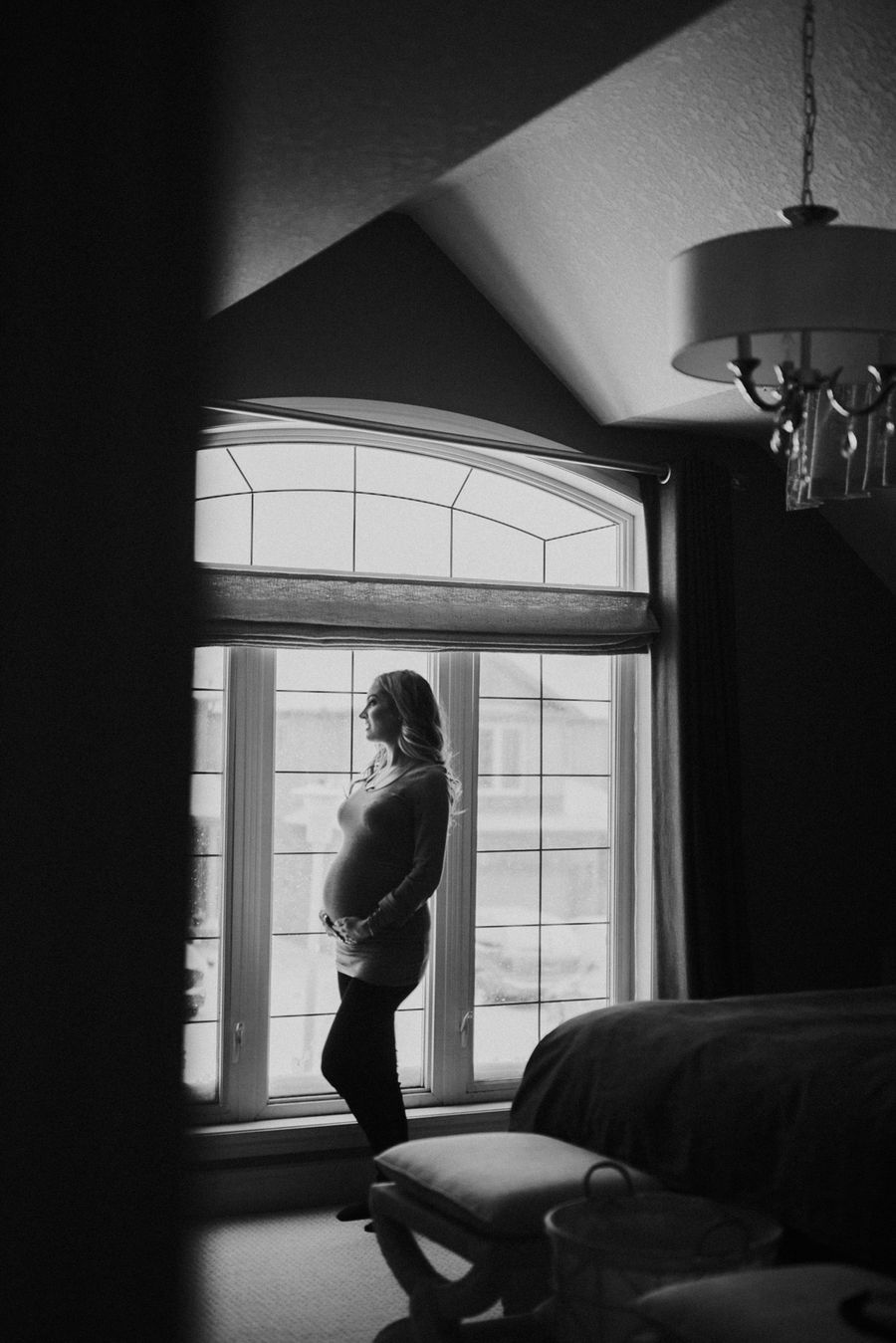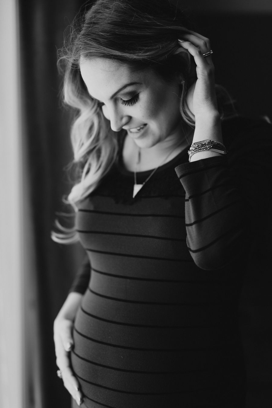 I have to say, this was one of my favourite maternity sessions ever!! It actually took place during a huge winter snowstorm. After it finally stopped snowing we snuck outside to take a few more pictures. It was -11 degrees but totally worth it for those snow-covered trees! Major props to **Michelle for braving that freezing cold weather**! She will be one tough mama, that’s for sure!
