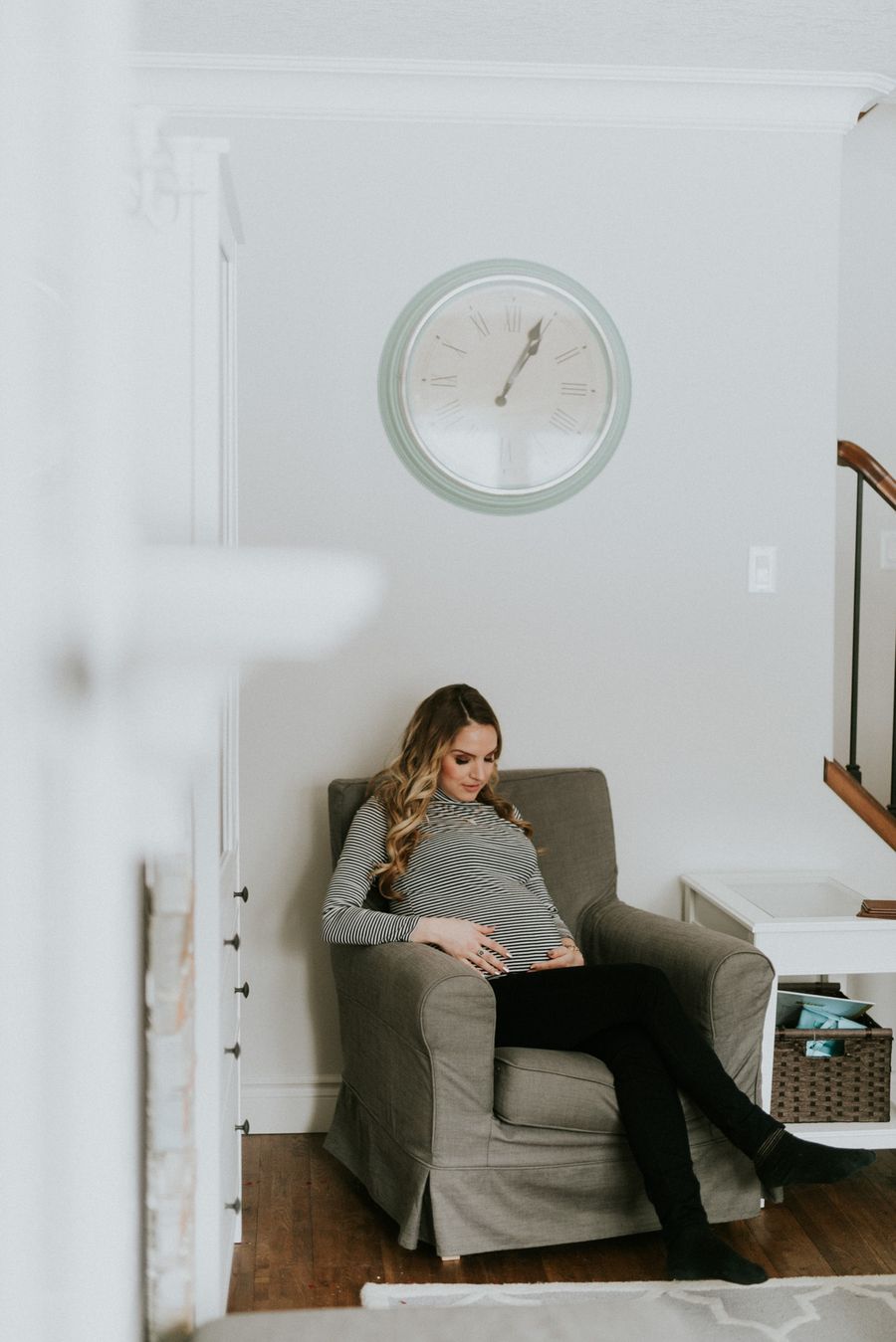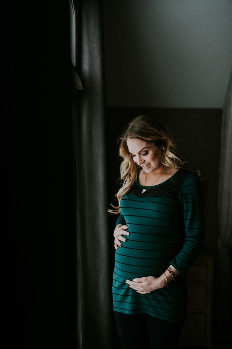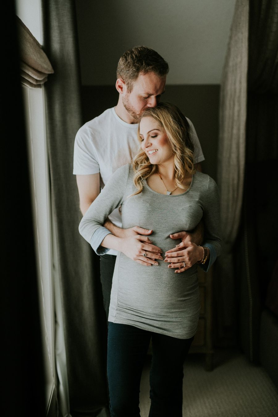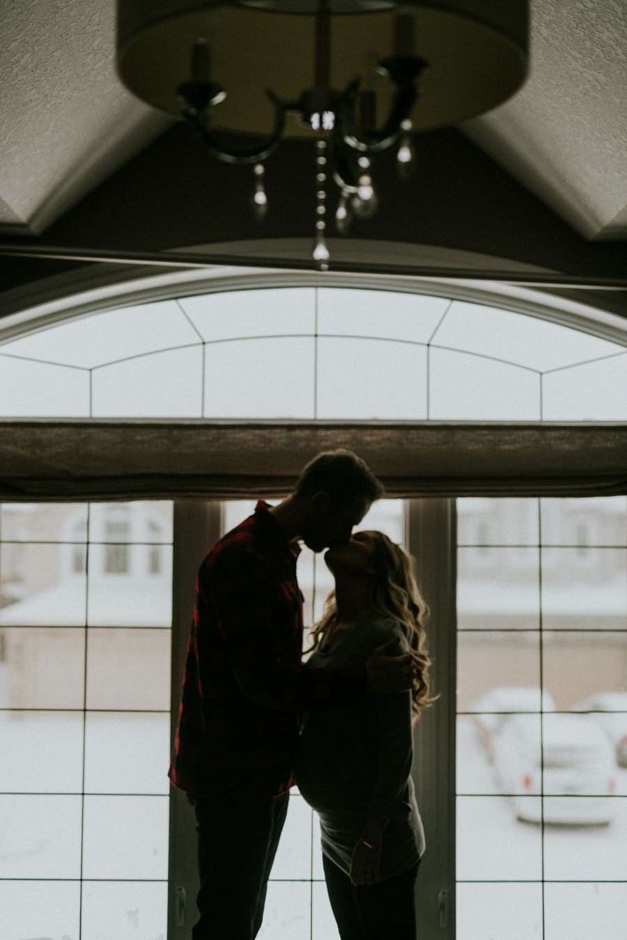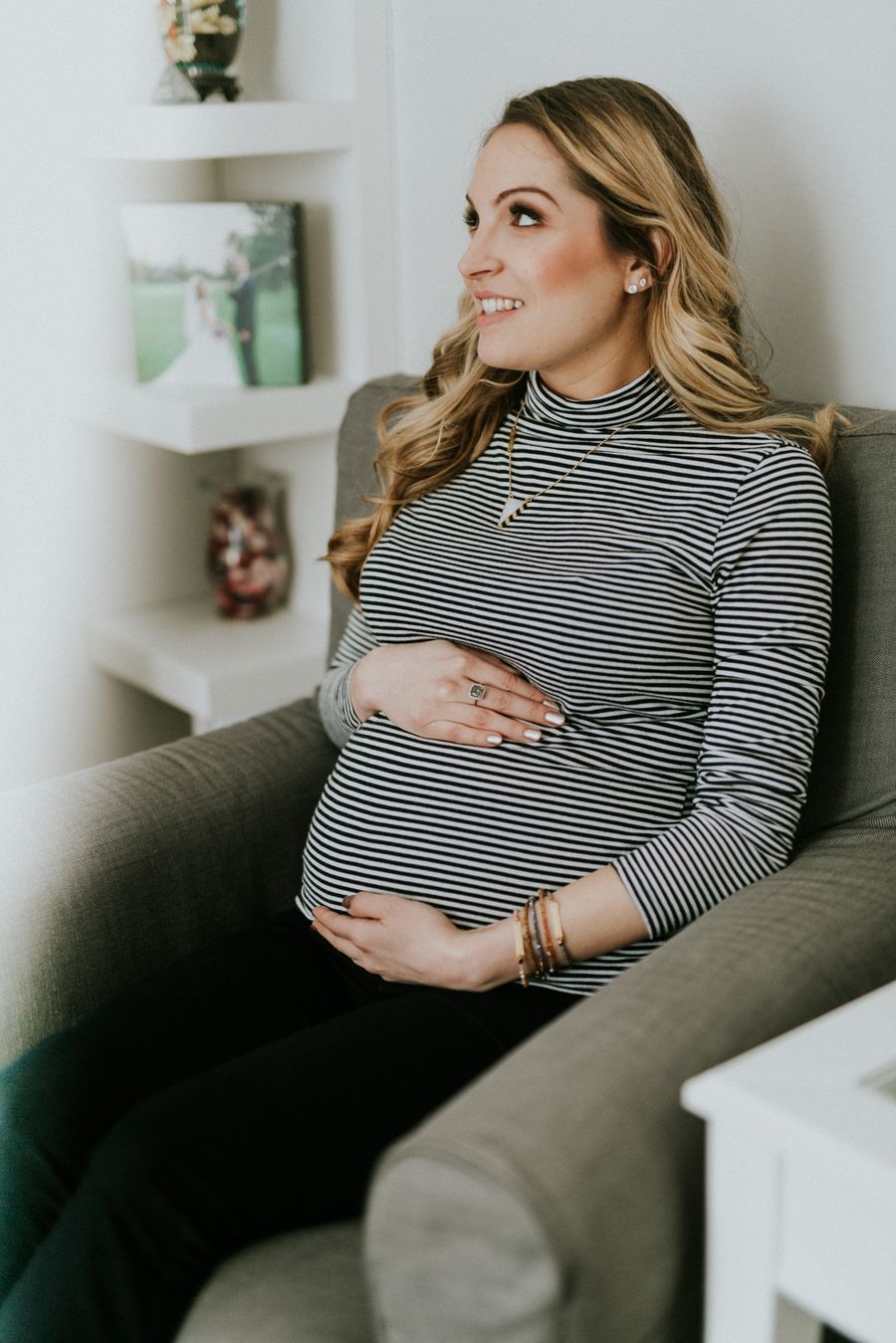 I have to say, this was one of my favourite maternity sessions ever!! It actually took place during a huge winter snowstorm. After it finally stopped snowing we snuck outside to take a few more pictures. It was -11 degrees but totally worth it for those snow-covered trees! Major props to **Michelle for braving that freezing cold weather**! She will be one tough mama, that’s for sure!