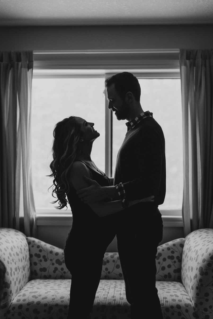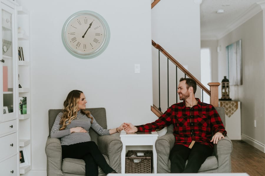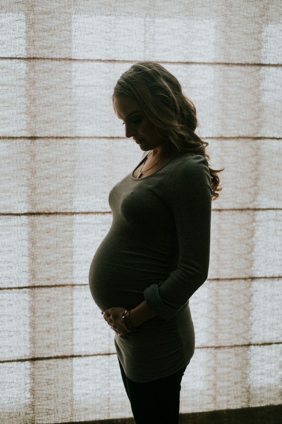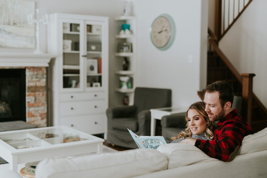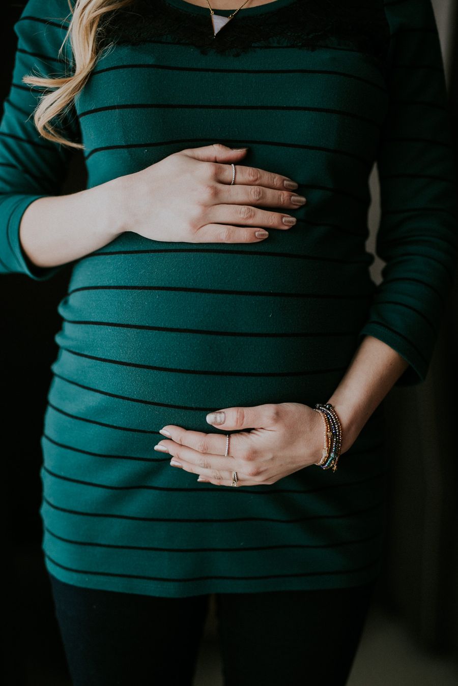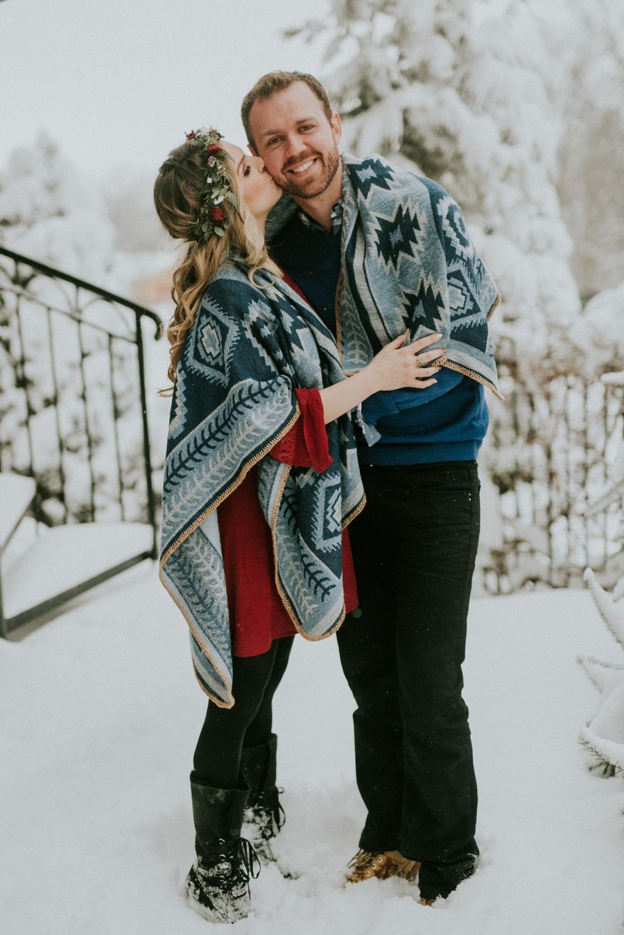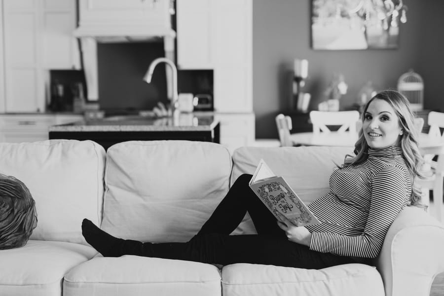 I have to say, this was one of my favourite maternity sessions ever!! It actually took place during a huge winter snowstorm. After it finally stopped snowing we snuck outside to take a few more pictures. It was -11 degrees but totally worth it for those snow-covered trees! Major props to **Michelle for braving that freezing cold weather**! She will be one tough mama, that’s for sure!