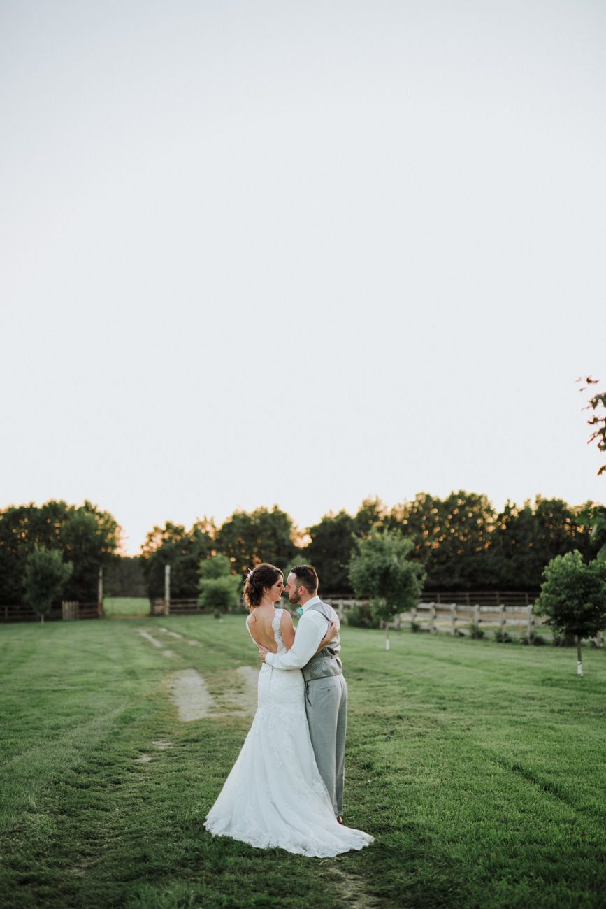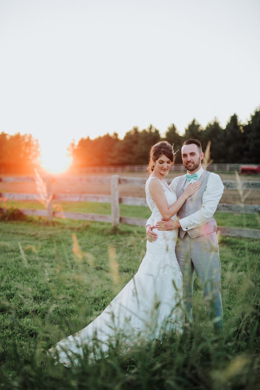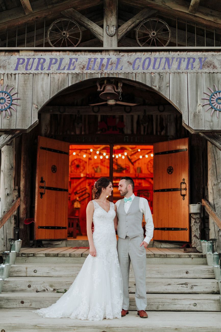 **Purple Hill Country Hall** was spectacular- I loved its wooden barn feel and warm romantic vibe. It was the perfect place for Roman and Lauren to celebrate their love and dance the night away. Also, lets talk about the sunsets that take place here, because it is worth mentioning. Far out into the field there is a long row of trees surrounding the venue’s property. And in that row of trees, there is a perfect little opening where the sun sinks into and brings about the most beautiful sunset. I was so grateful that this couple decided to sneak out between dinner and do a quick **sunset-session** because the photos that we captured were so worth it!
