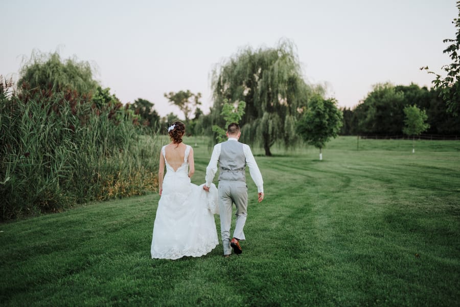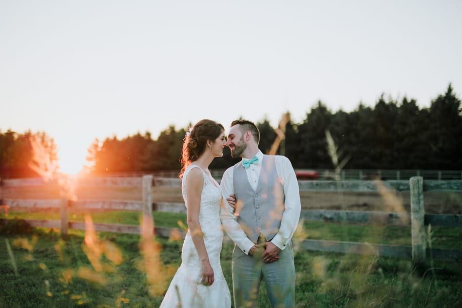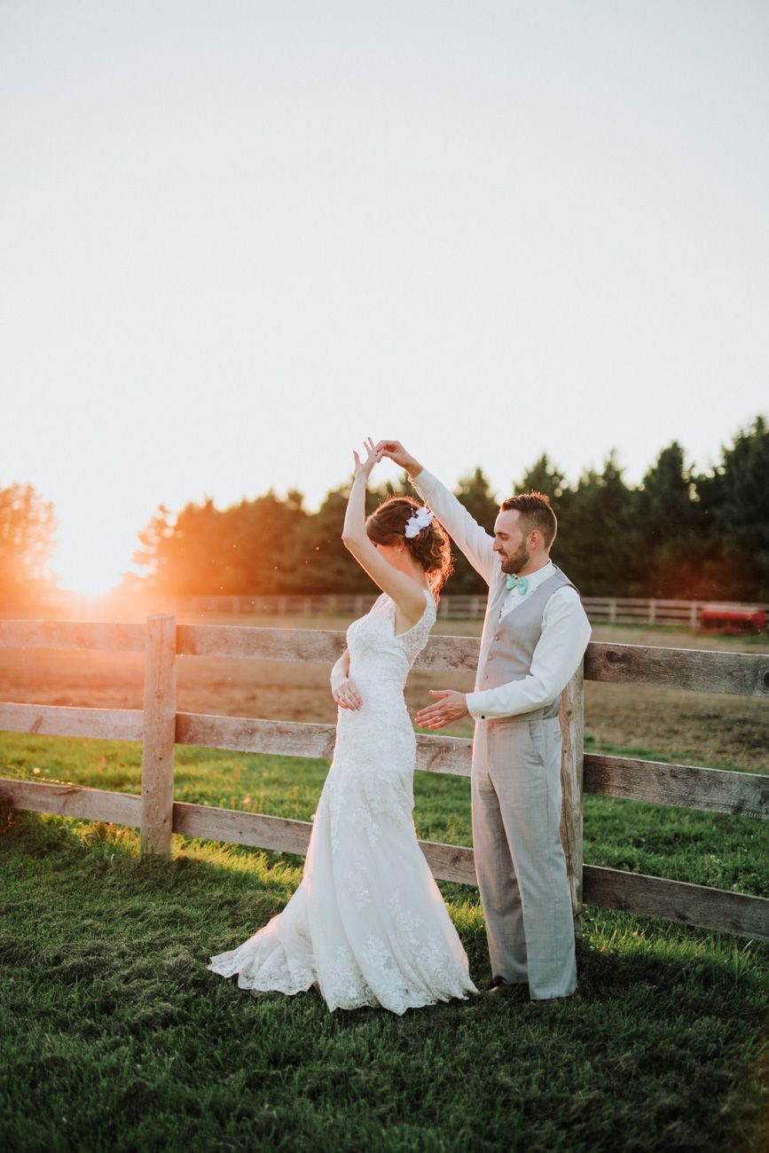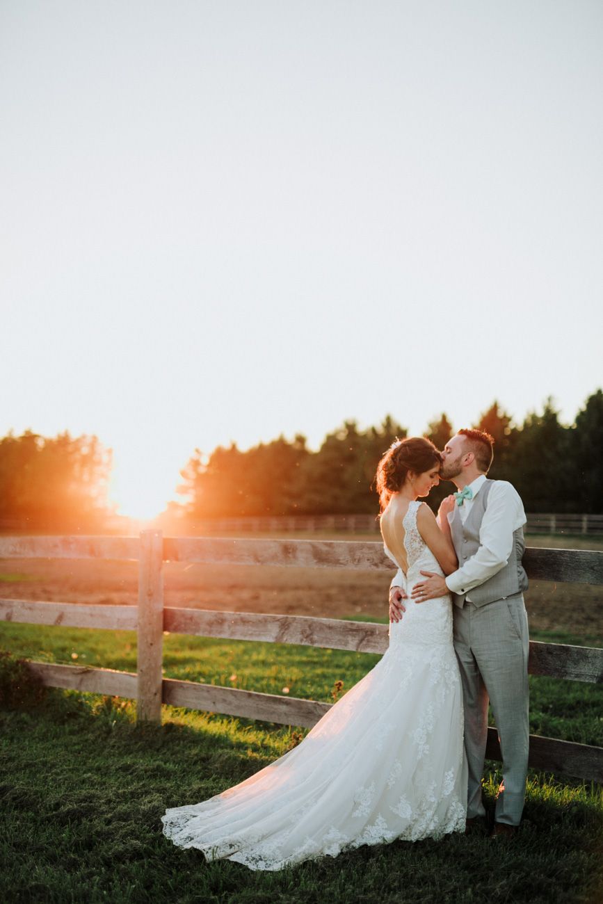 **Purple Hill Country Hall** was spectacular- I loved its wooden barn feel and warm romantic vibe. It was the perfect place for Roman and Lauren to celebrate their love and dance the night away. Also, lets talk about the sunsets that take place here, because it is worth mentioning. Far out into the field there is a long row of trees surrounding the venue’s property. And in that row of trees, there is a perfect little opening where the sun sinks into and brings about the most beautiful sunset. I was so grateful that this couple decided to sneak out between dinner and do a quick **sunset-session** because the photos that we captured were so worth it!