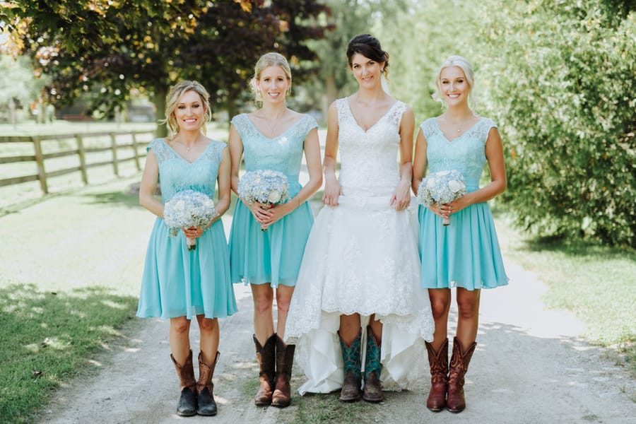 **Roman and Lauren** could not have had a more perfect wedding day. Outside it was warm and sunny, and everything about Lauren’s parent’s farm was beautiful and picture-perfect. I had such a great time photographing this couple and their fun bridal party. The girls even rocked their cowboy boots, which gave this rustic country wedding a nice kick to it (I know I’m punny :P)!