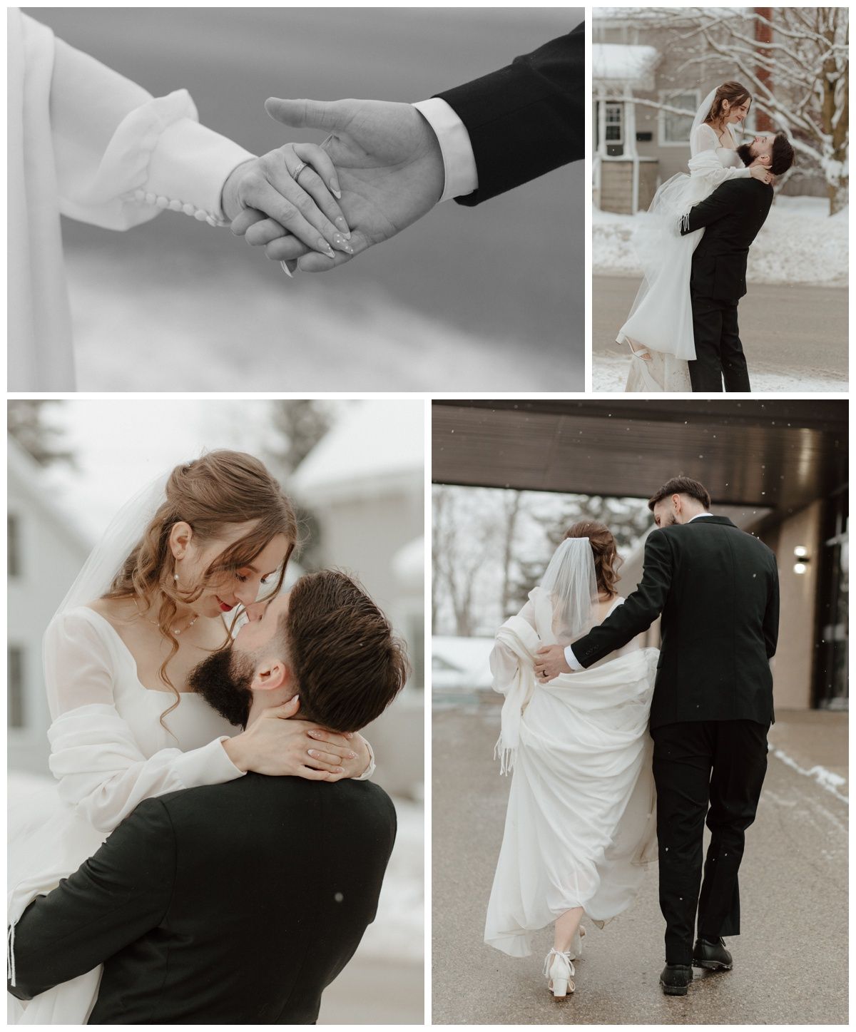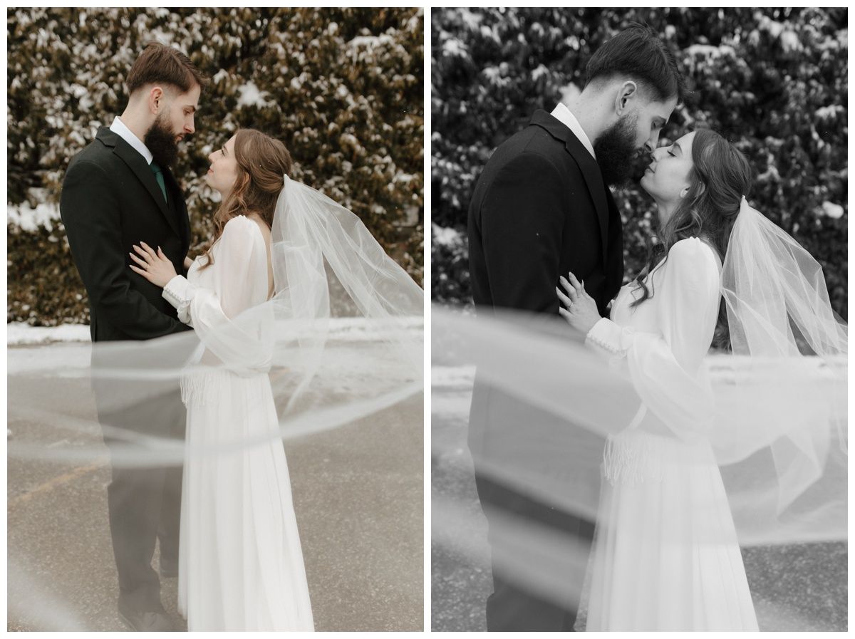 The Magic of a Winter Wonderland—In a Church Parking Lot! As a wedding photographer, I love finding beauty in unexpected places. And let me tell you—this snowy January wedding in Listowel, Ontario, was the perfect example of how even the most unassuming locations can turn into breathtaking backdrops. Every single one of the portraits from E+J’s wedding was taken in a church parking lot. Yes, you read that right! When most couples think about their wedding photos, they imagine grand estates, lush gardens, or stunning landscapes. But the truth is, the magic isn’t in the location—it’s in the light, the moment, and the connection between two people in love. And on this particular day, nature gave us the most incredible gift: fresh snow, soft overcast skies, and the kind of winter wonderland that photographers dream of. The snow-covered trees lining the lot acted as a perfect, natural backdrop, making the photos feel like they were taken deep in a serene forest rather than just steps away from the church doors. The muted tones of winter allowed E+J to truly shine, their love and warmth standing out against the crisp white surroundings. The soft, diffused light of a snowy day is an absolute dream for wedding photography—no harsh shadows, just the perfect glow to highlight every tender glance and joyful laugh. This is why I always tell my couples: Don’t stress too much about the location! A skilled photographer can create magic anywhere. Whether it’s a small-town parking lot or a lavish venue, the key is to embrace the moment, trust the process, and let your love do the rest. So if you’re planning a winter wedding, take heart—no matter where you are, there’s beauty to be found. And sometimes, the most unexpected places turn out to be the most magical of all. Looking for a photographer who can turn the ordinary into extraordinary? Let’s chat about your big day!