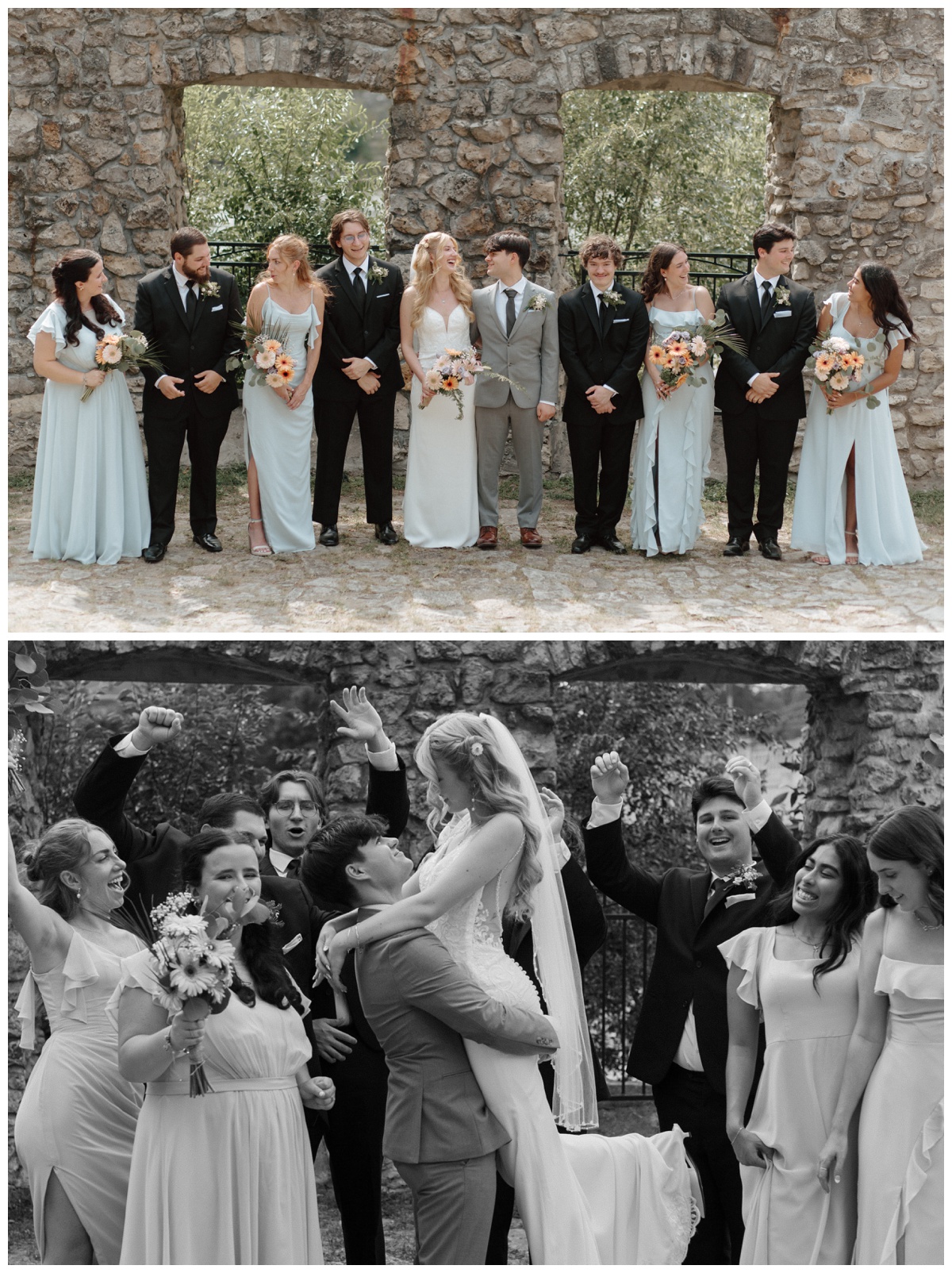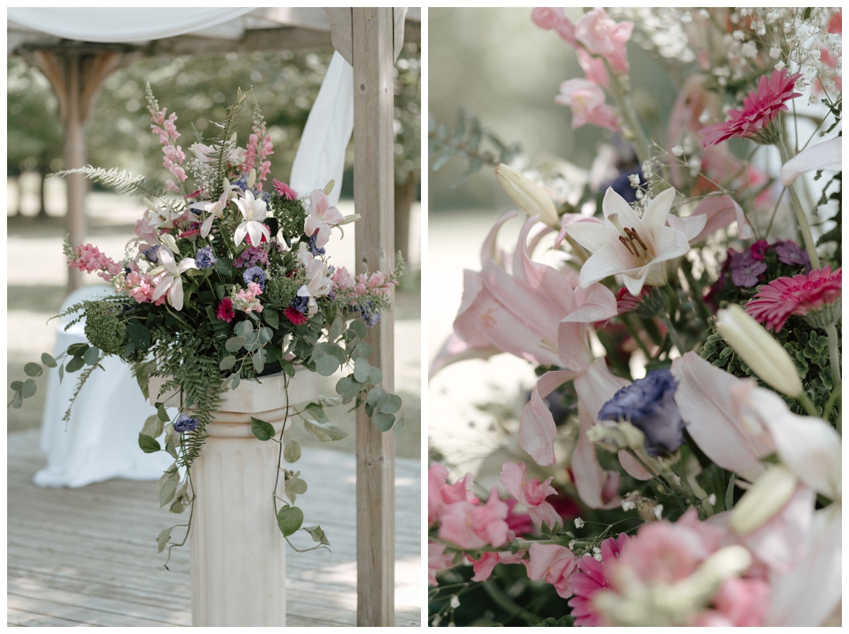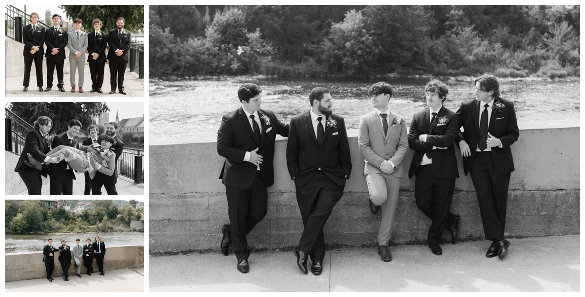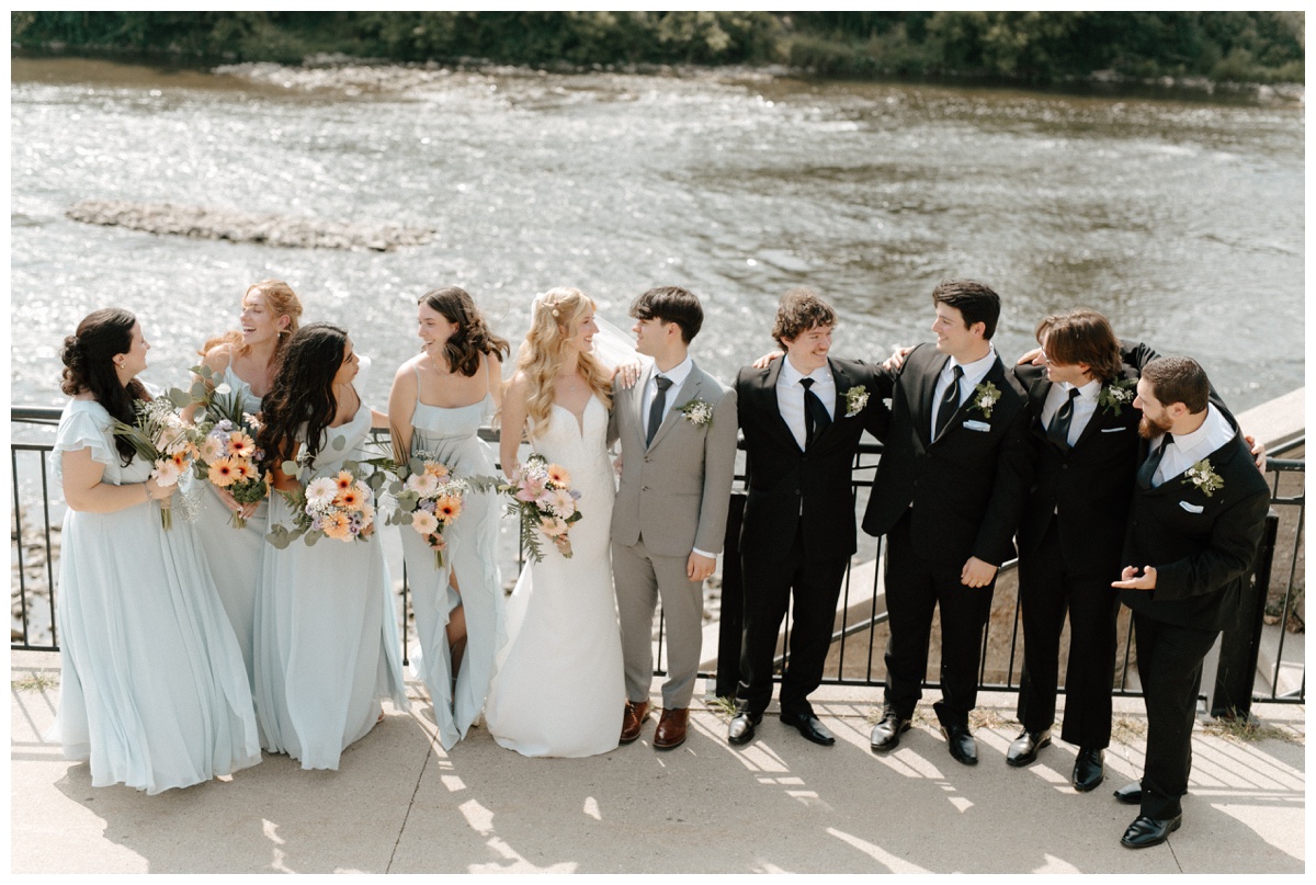 Summer wedding at the Waterloo Regional Police Association and Recreation Centre, and bridal party photos at Mill Race Park in Cambridge, Ontario